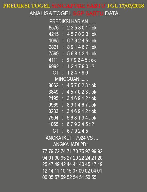 KUNCI PREDIKSI TOGEL SGP SABTU 17 03 2018 KUNCI PREDIKSI TOGEL